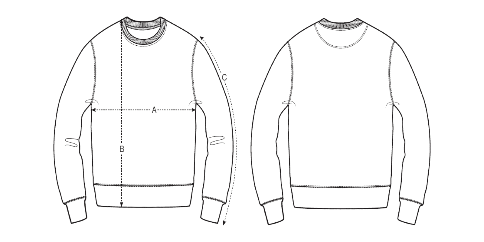 Mesurez-vous ainsi qu'un de vos sweatshirts et comparez les dimensions avec celles-ci.