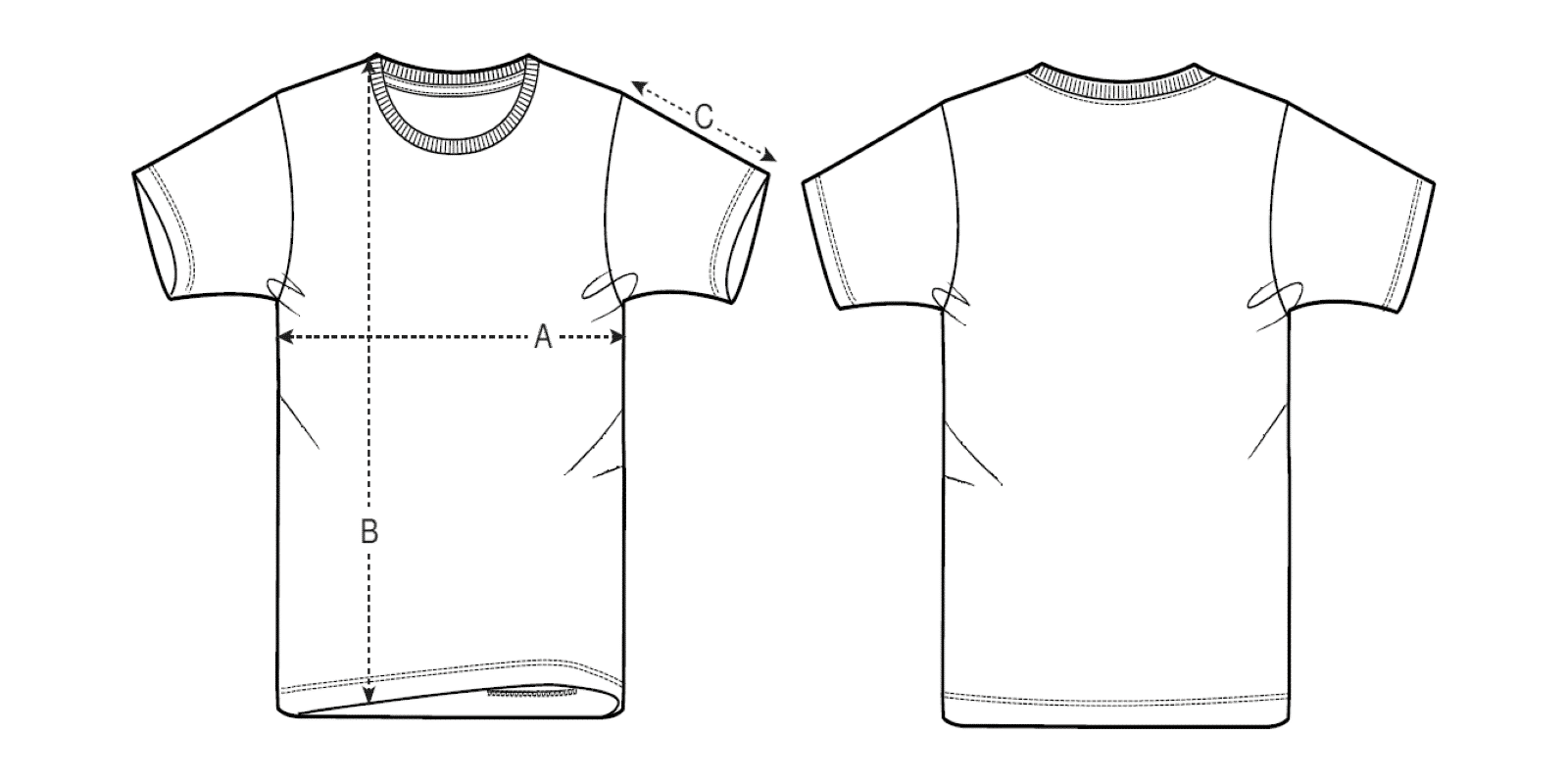 Pour calculer la largeur du tee-shirt, placez l'extrémité du mètre à 2,5 cm sous l'emmanchure et tirez le mètre sur le tee-shirt jusqu'à la couture sous la manche opposée.