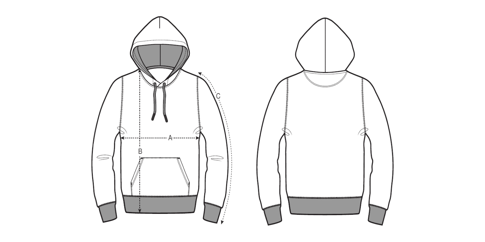 Mesurez-vous ainsi qu'un de vos sweats à capuche et comparez les dimensions avec celles-ci.